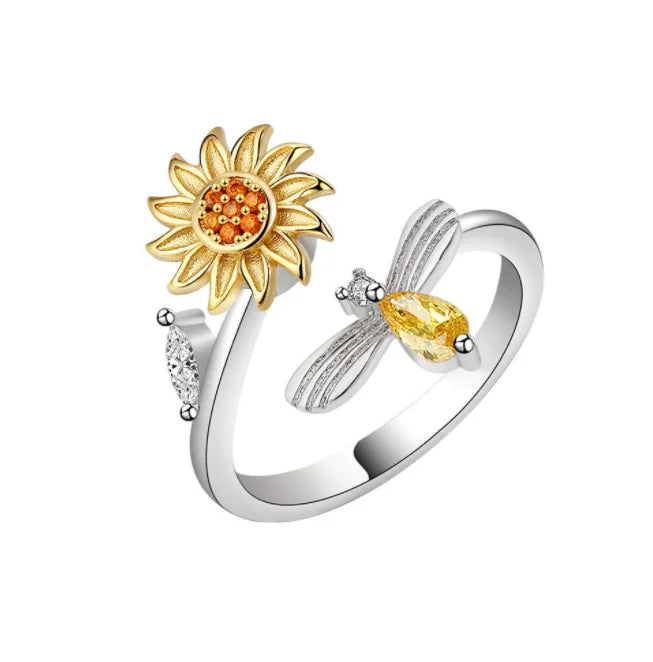 2025 New Fashion Adjustable Open Zircon Ring Rotating Decompression Anti Stress Anxiety Fidget Ring Sunflower Bee Ring |
