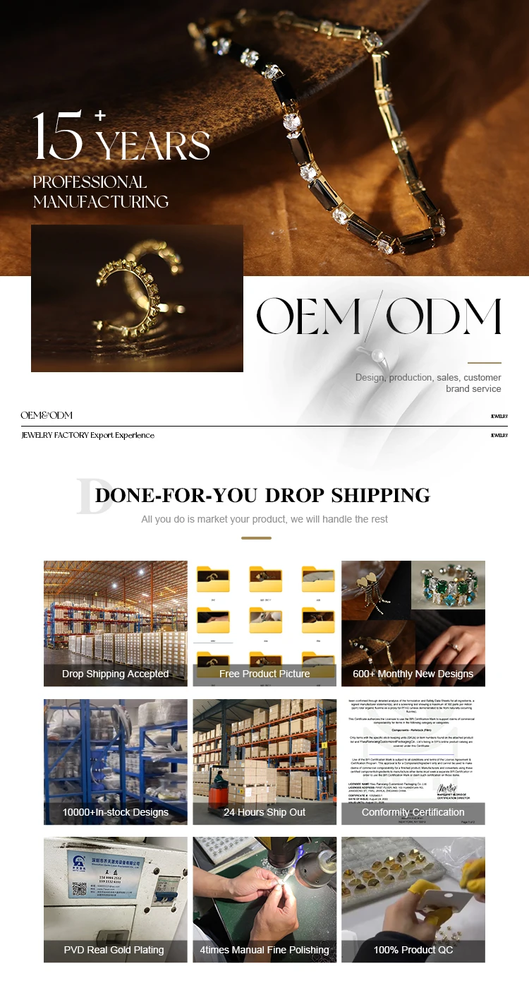 We offer eco-friendly packaging, including plastic bags, jewelry boxes, gift boxes, and packaging tailored to your brand.